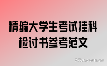 针对这次挂科,我经过深刻反思,对自己做出全面的检讨。并在这里写下保证书,保证以后一定要好好学习,绝不再出现挂科情况。经过这次的检讨,我相信我一定会找出自身学习上的缺点,并且努力克服这些缺点,踏实学习的脚步,一点一滴的进步。也请老师相信我,再给我一次机会,让我能够证明自己,其实我能做的更好。
