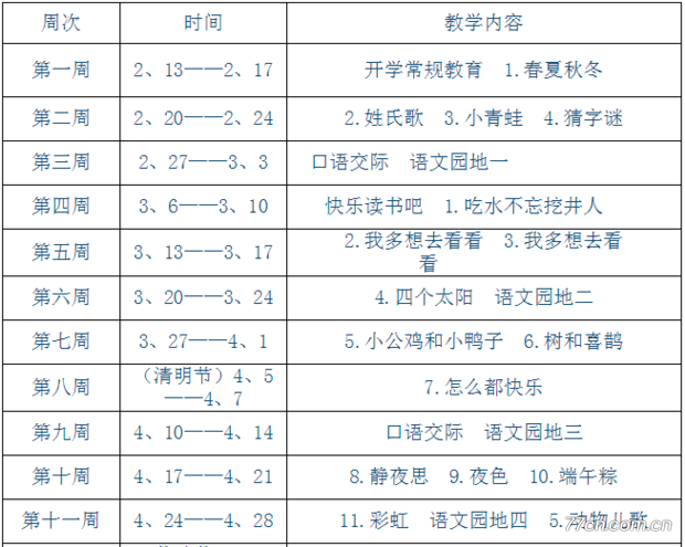 周次时间教学内容